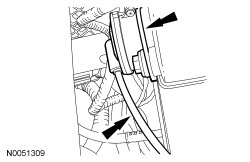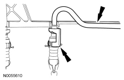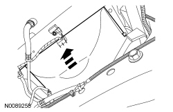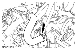 - Disconnect the hose from the retainer on the fan shroud.