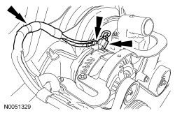 51. Remove the nut and disconnect the electrical connector from the generator wiring harness and remove from the retainer.
