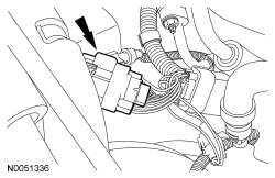 59. Disconnect the transmission electrical connector from the harness and the clip on the A/C line.