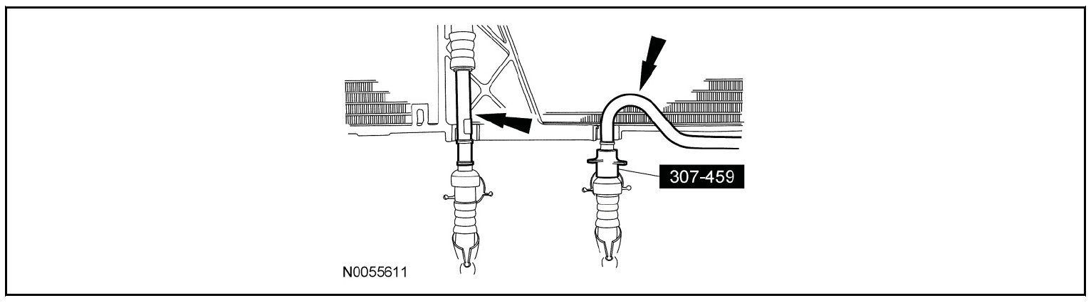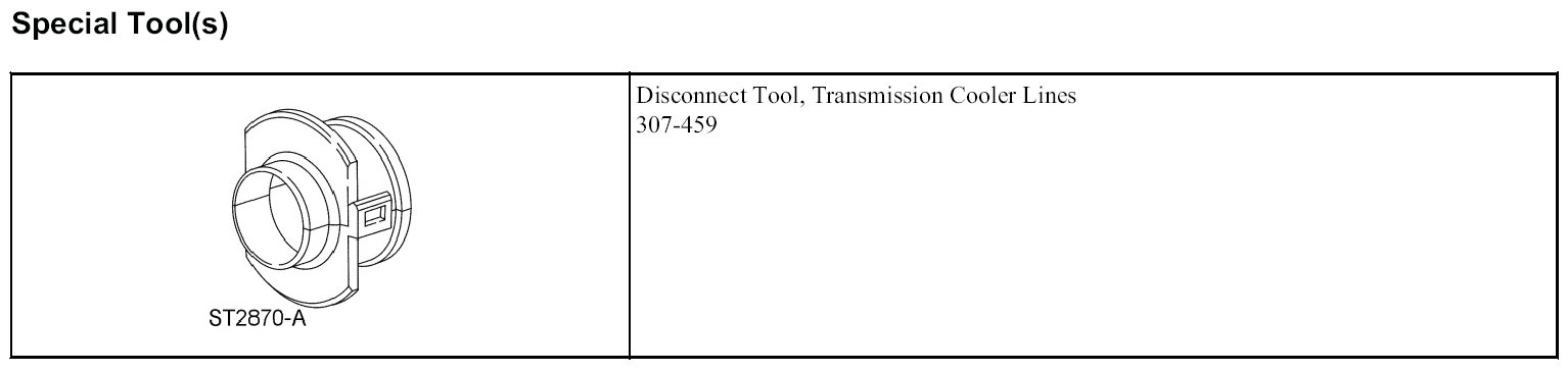 20. Using the Transmission Cooler Lines Disconnect Tool, disconnect the transmission cooler lines from the auxiliary cooler.