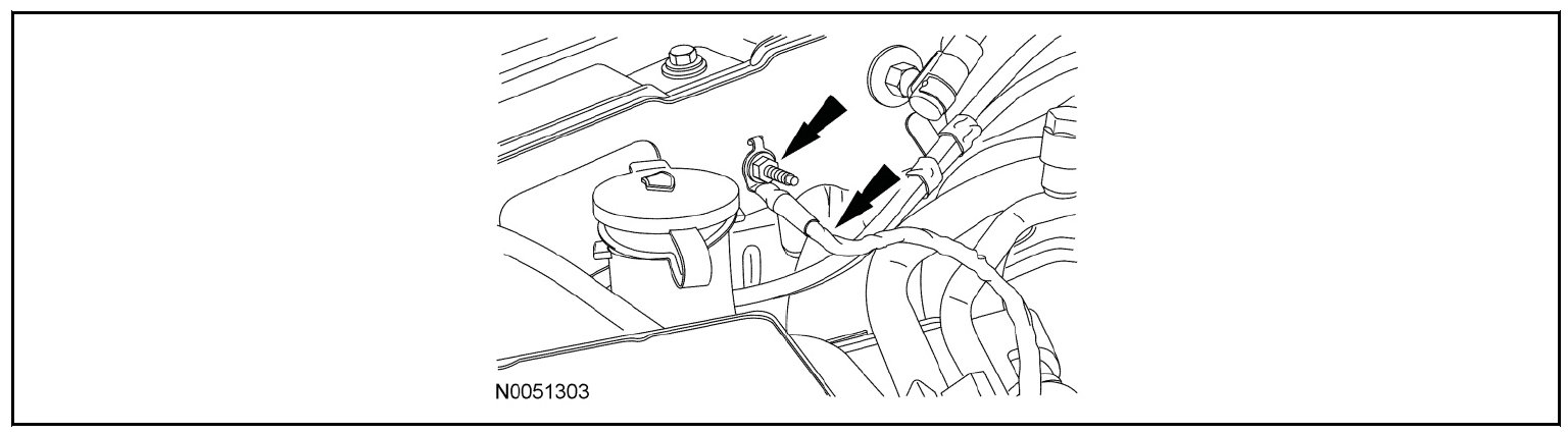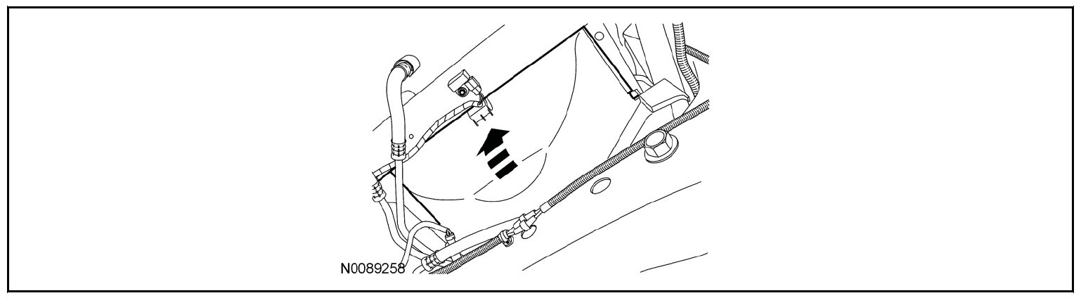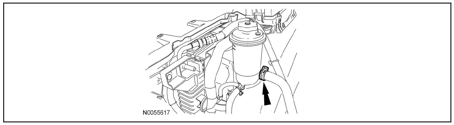 - Unclip the RH hose from the retainers on the side of the degas bottle/air cleaner module.