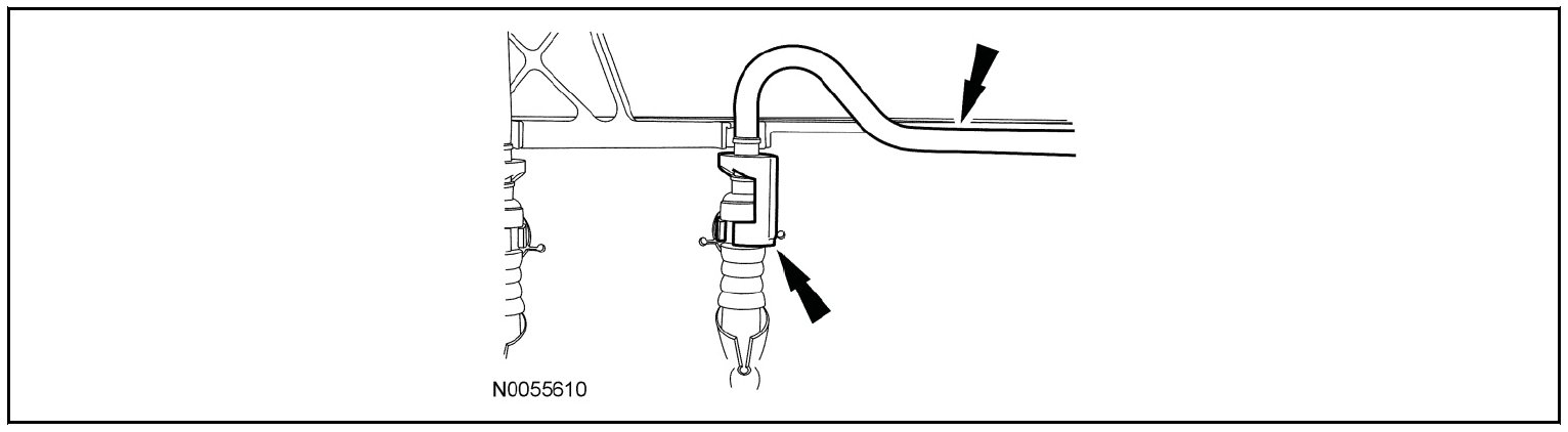 - Disconnect the hose from the retainer on the fan shroud.