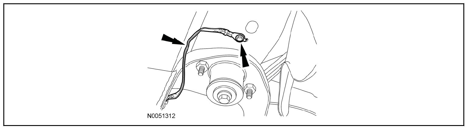 26. Remove the bolt and the ground wire from the body.
