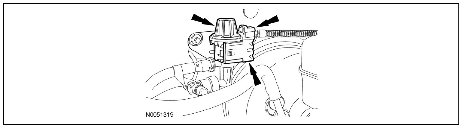 38. Disconnect the canister purge valve electrical connector and remove it from the bracket, position the canister aside.