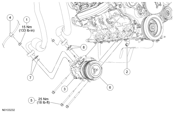 NOTE: A new A/C compressor may come equipped with an A/C clutch disc and hub, A/C compressor pulley and A/C clutch field coil already installed. If these components are not pre-installed, it will be necessary to transfer these parts from the old A/C compressor to the new compressor prior to installation of the A/C compressor if suitable for reuse.