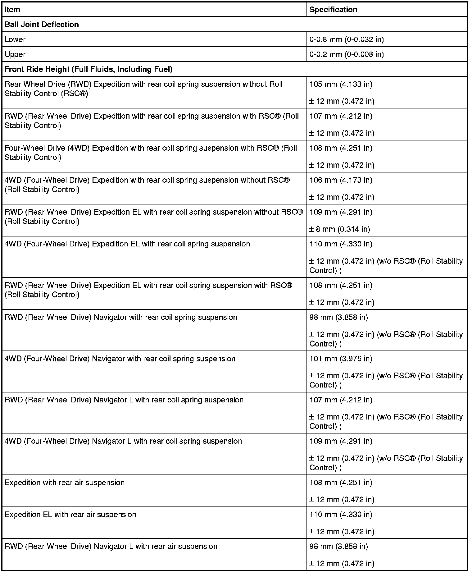 Alignment Specifications Vehicles With Rear Coil Spring Suspension