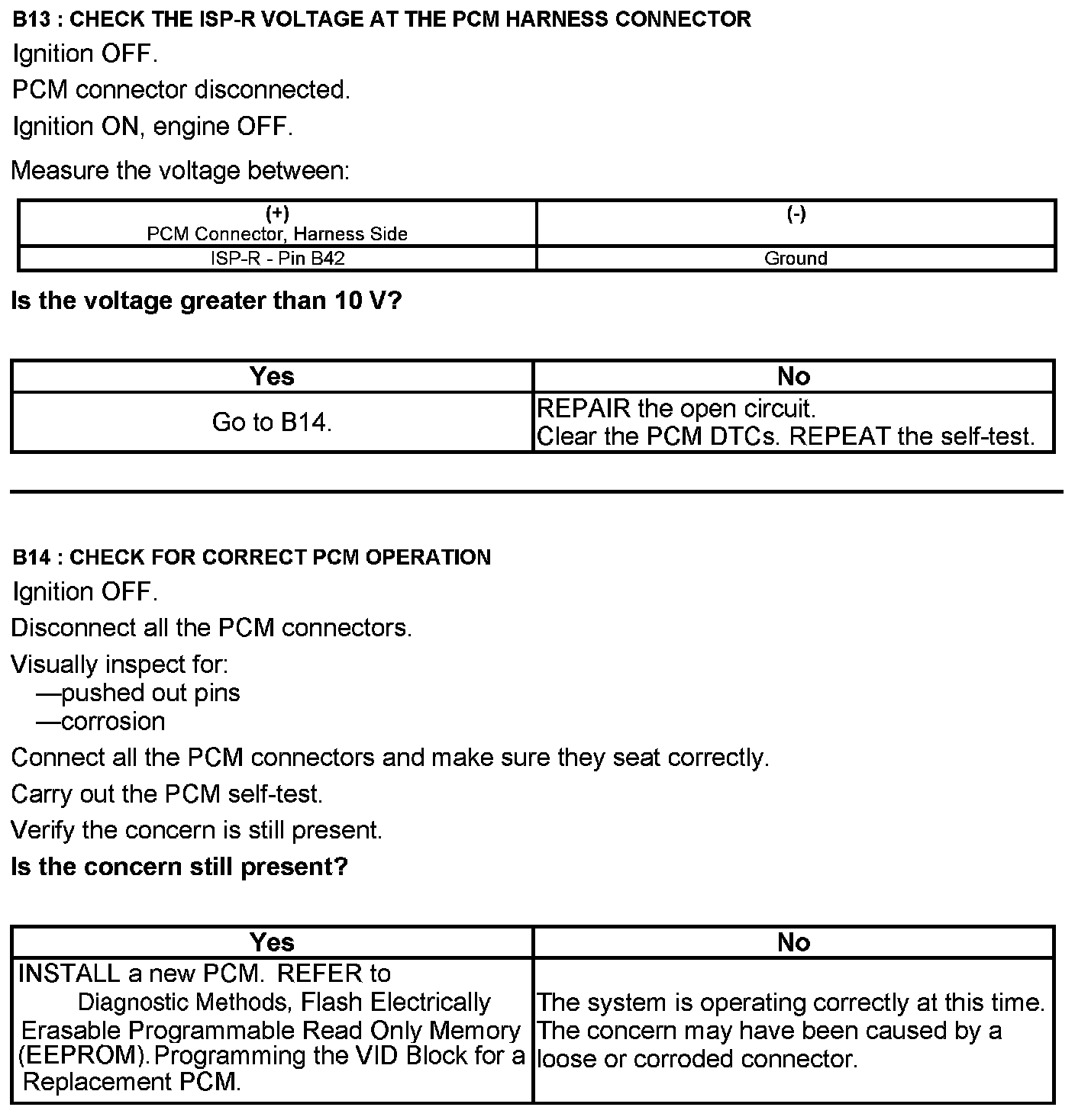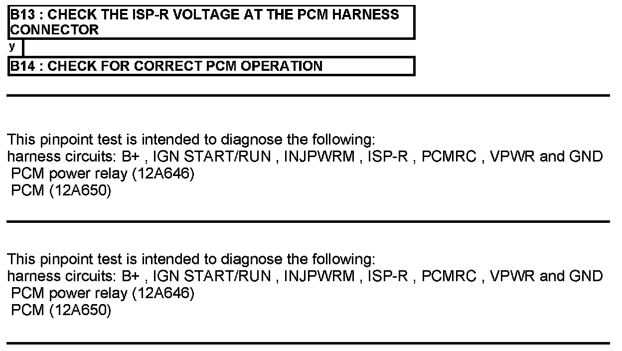 Home >> Ford >> 2012 >> Expedition 2WD V8-5.4L >> Repair and Diagnosis >> Powertrain Management >> Computers and Control Systems >> Testing and Inspection >> Pinpoint Tests >> Test B: Powertrain Control Module (PCM) Power Relay