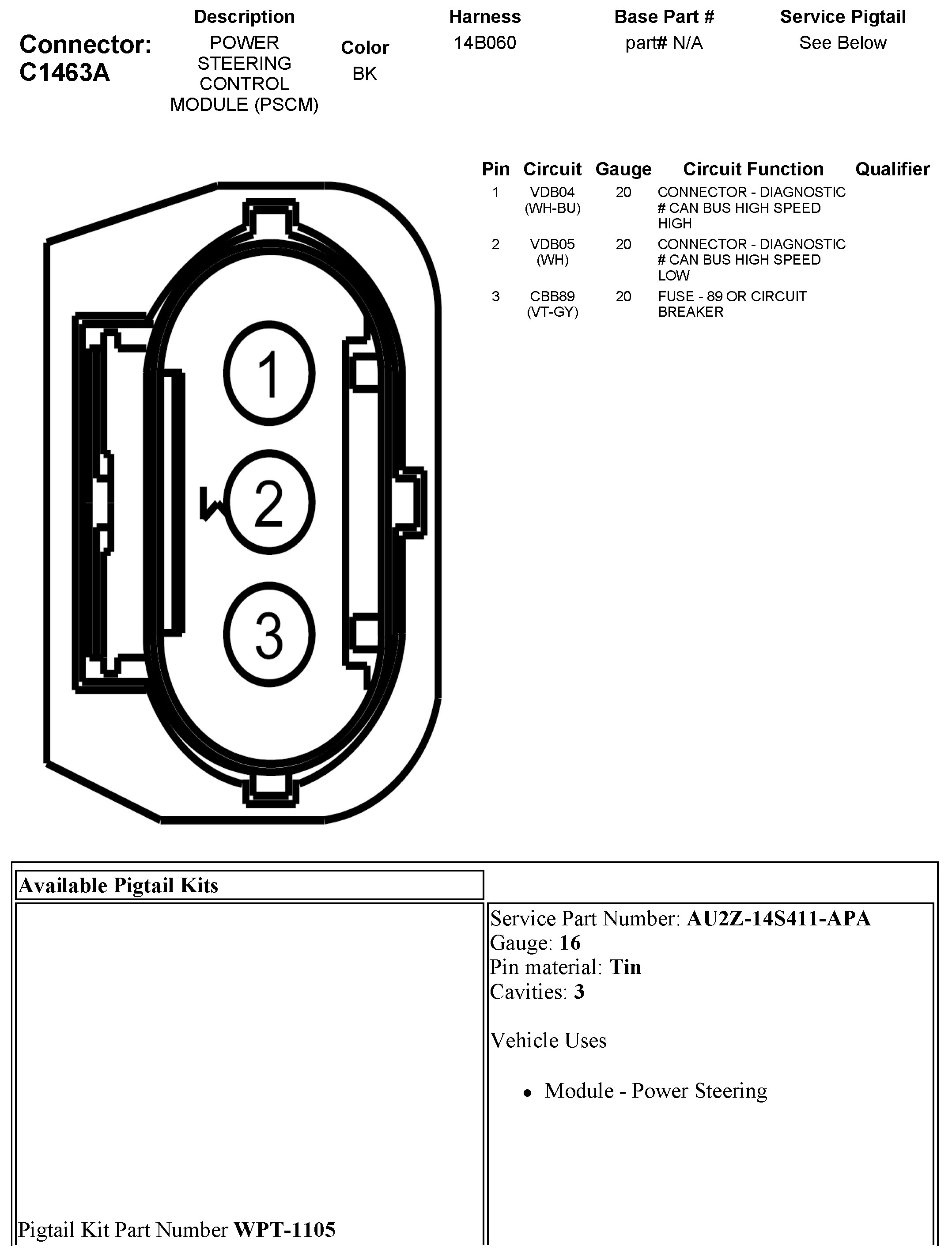 C1463A Power Steering Control Module (PSCM)
