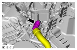 16. If equipped, connect the degas bottle coolant hose to the engine coolant tube.