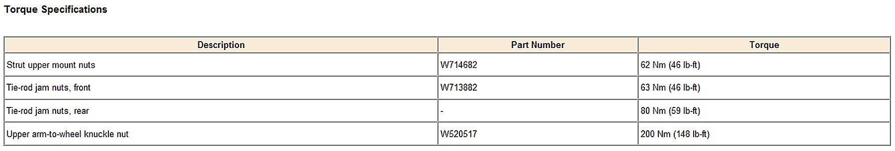 Torque Specifications