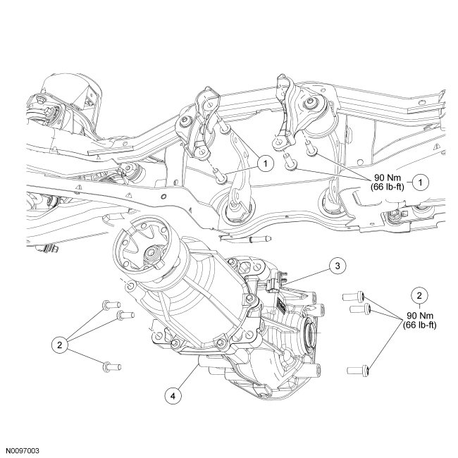 5. Install the 4 differential housing-to-front insulator bracket bolts.