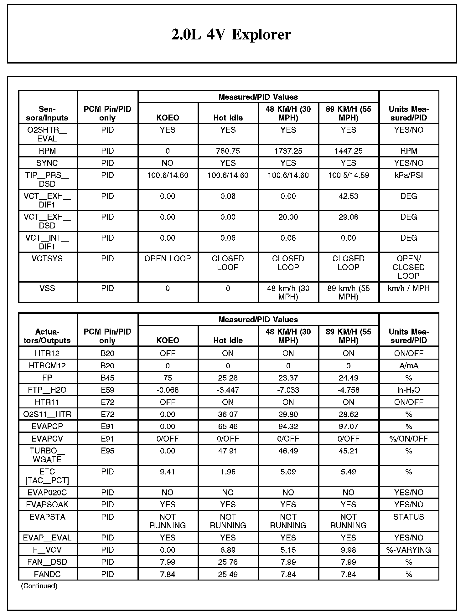 Home >> Ford >> 2012 >> Explorer FWD L4-2.0L Turbo >> Repair and Diagnosis >> Powertrain Management >> Computers and Control Systems >> Testing and Inspection >> Scan Tool Testing and Procedures >> Typical Diagnostic Reference Values