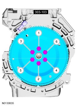Install the flexplate, the 6 new bolts and the Flywheel Holding Tool.