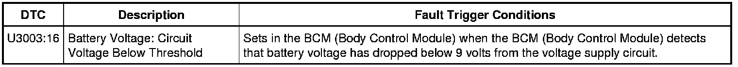 DTC Fault Trigger Conditions