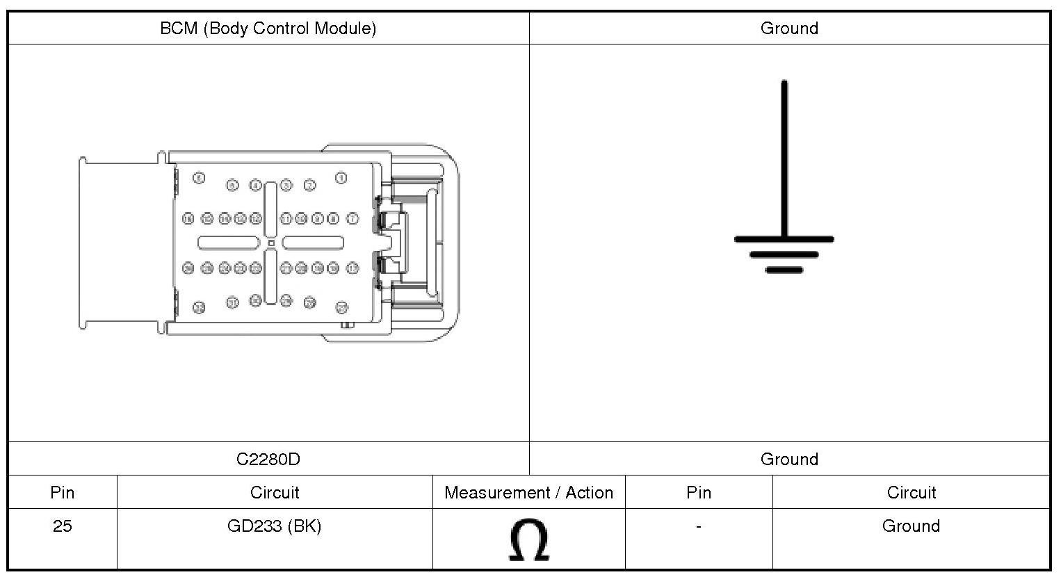 2. Disconnect: BCM (Body Control Module) C2280D.