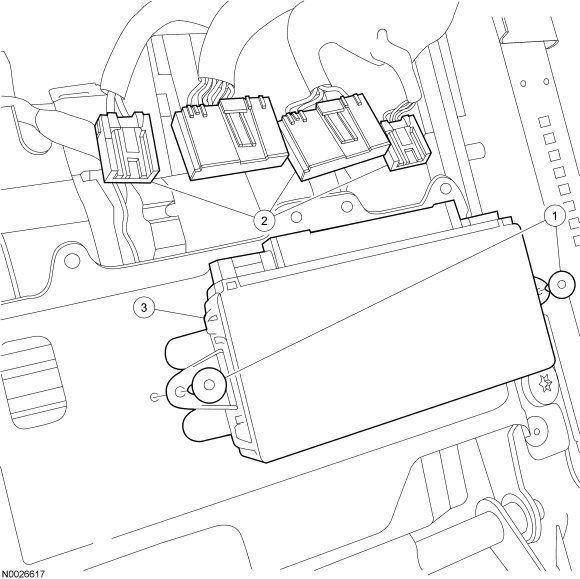 NOTE: Prior to the replacement of the module, it is necessary to upload the module configuration information to the appropriate scan tool. This information must be downloaded into the new module after installation.
