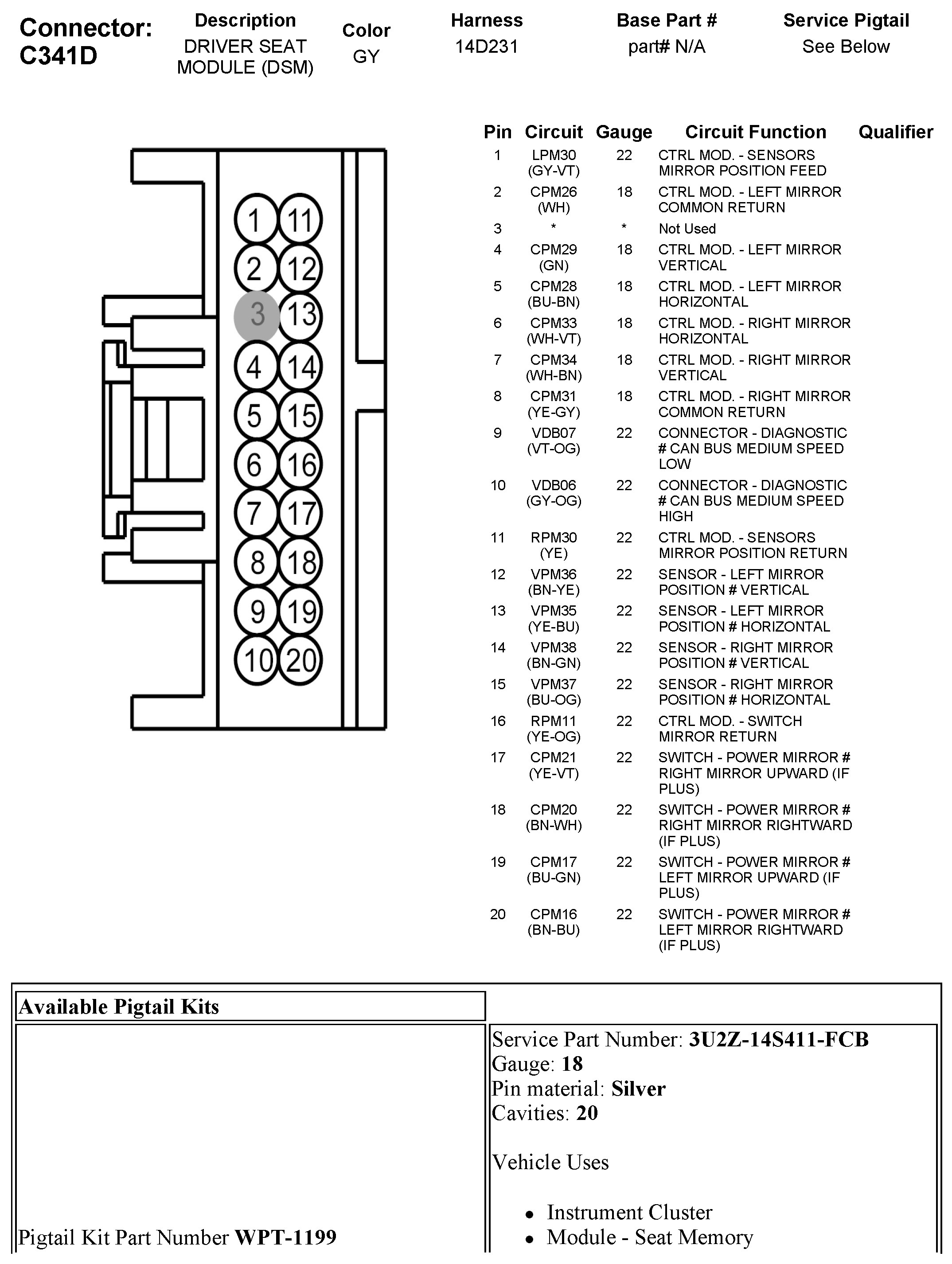 C341D Driver Seat Module (DSM)