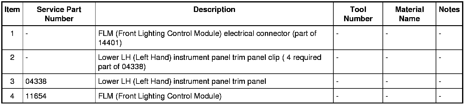 3. Disconnect and remove the FLM (Front Lighting Control Module) from the lower LH (Left Hand) instrument panel trim panel.