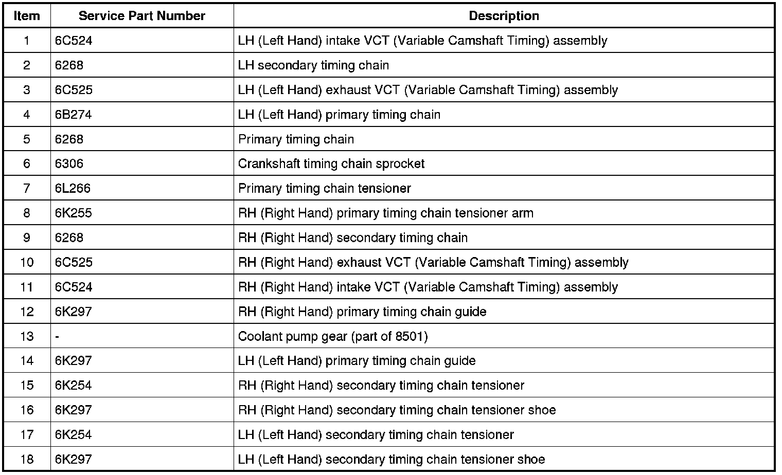 Assemble the 2 LH (Left Hand) VCT (Variable Camshaft Timing) assemblies and the LH (Left Hand) secondary timing chain.