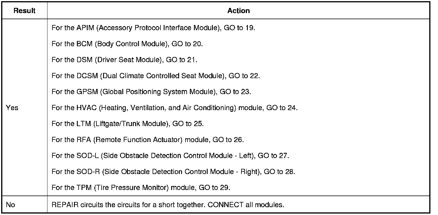 1. Disconnect modules one at a time until other MS-CAN (Medium Speed Controller Area Network) modules pass the network test. Skip to the end once network operation is restored.