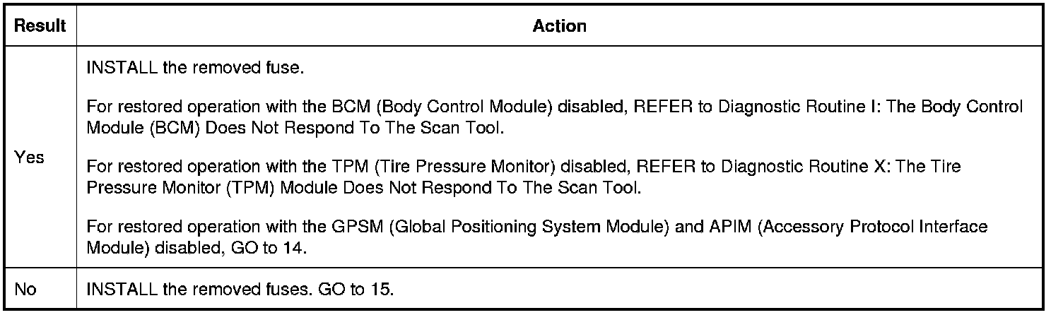 13. CHECK FOR RESTORED COMMUNICATION WITH THE BCM (Body Control Module), GPSM (Global Positioning System Module), TPM (Tire Pressure Monitor) MODULE, AND THE APIM (Accessory Protocol Interface Module) DISABLED