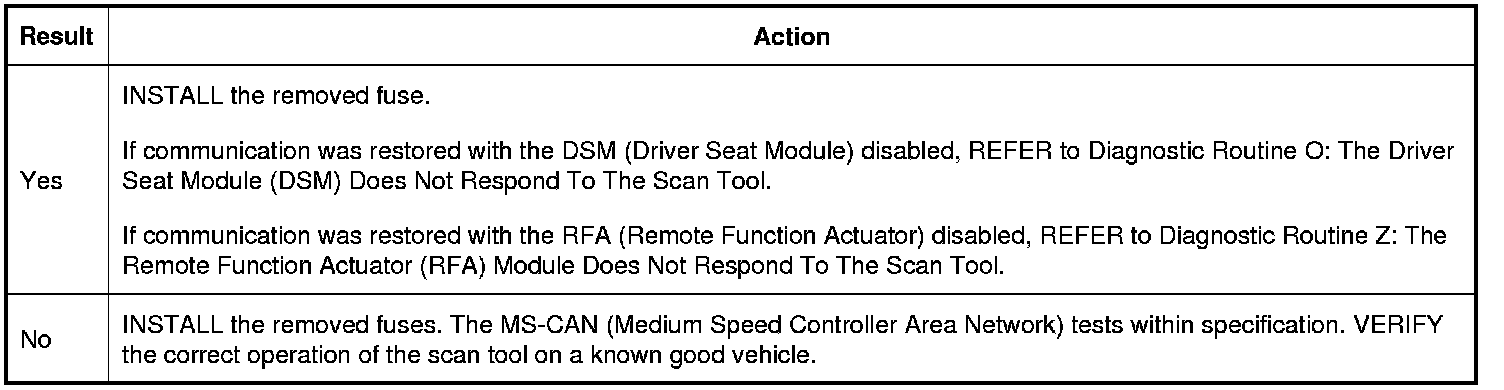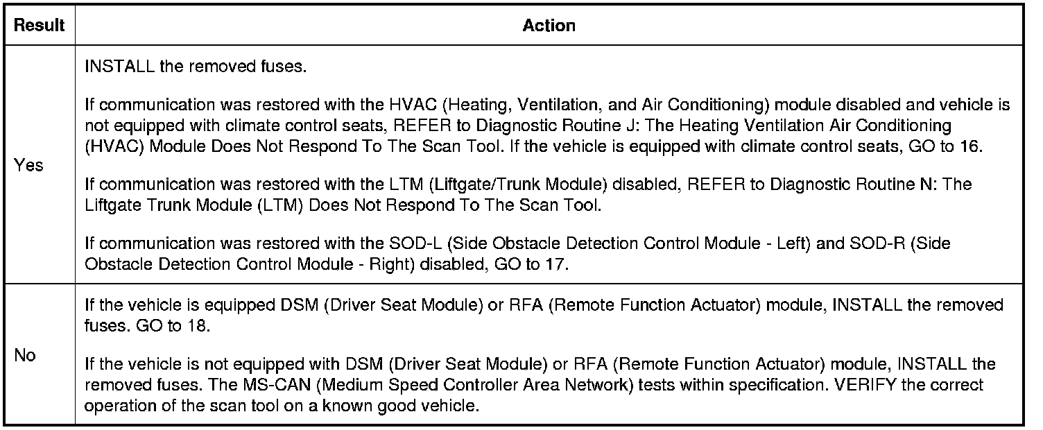 1. Disable modules one at a time until other MS-CAN (Medium Speed Controller Area Network) modules pass the network test. Skip to the end once network operation is restored.