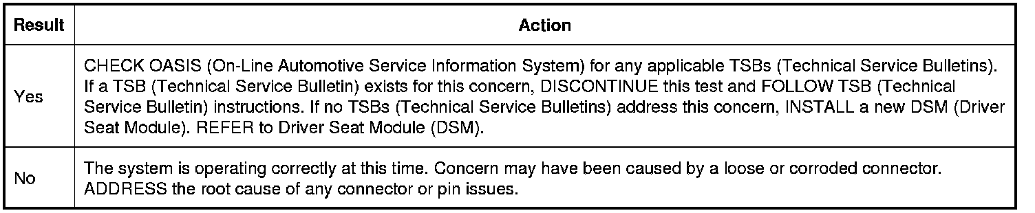 21. CHECK THE DSM (Driver Seat Module) FOR CORRECT OPERATION