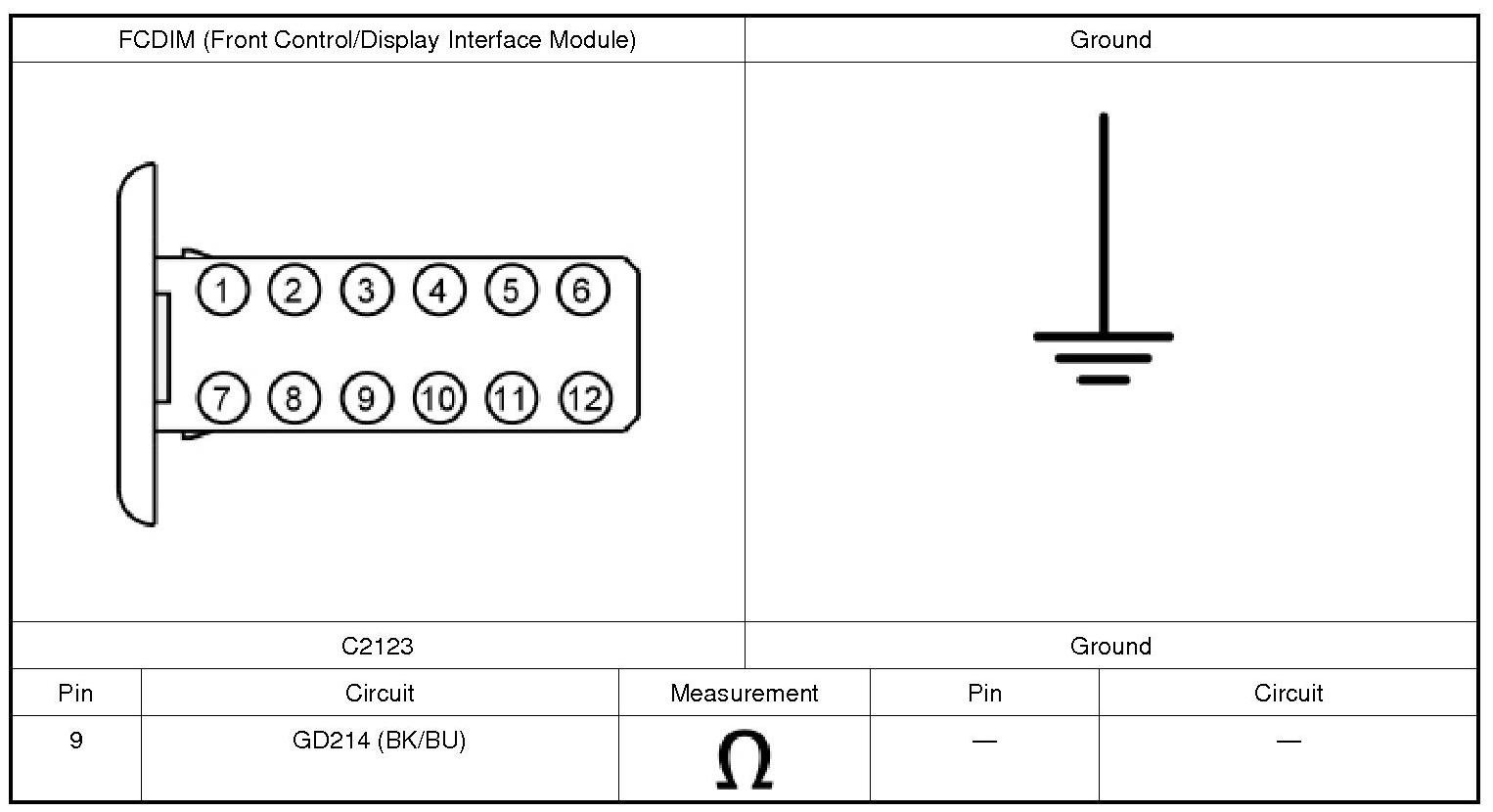 2. CHECK THE FCDIM (Front Control/Display Interface Module) GROUND CIRCUIT FOR AN OPEN