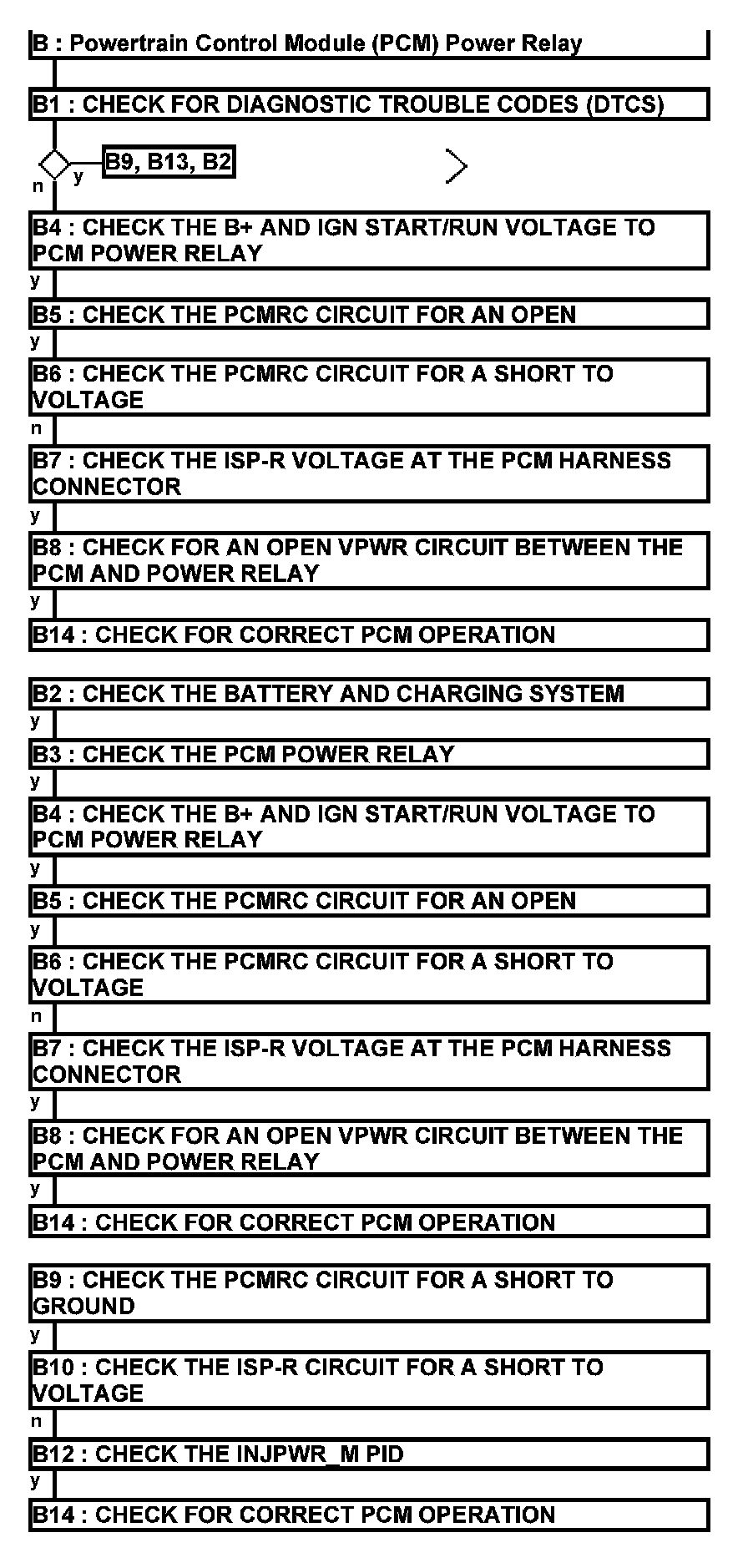 Home >> Ford >> 2012 >> Explorer FWD V6-3.5L >> Repair and Diagnosis >> Powertrain Management >> Computers and Control Systems >> Testing and Inspection >> Pinpoint Tests >> Test B: Powertrain Control Module (PCM) Power Relay