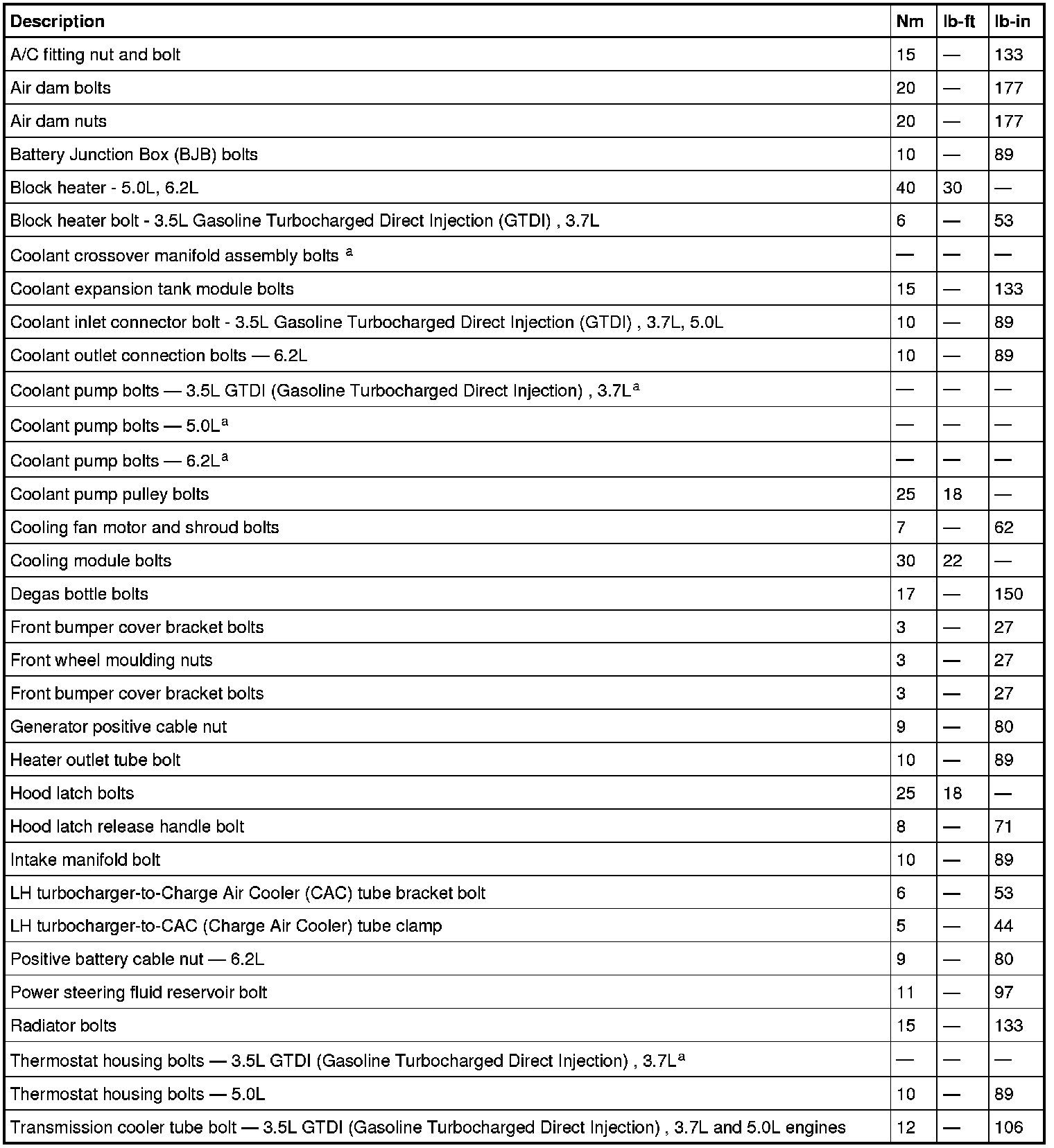 Torque Specifications