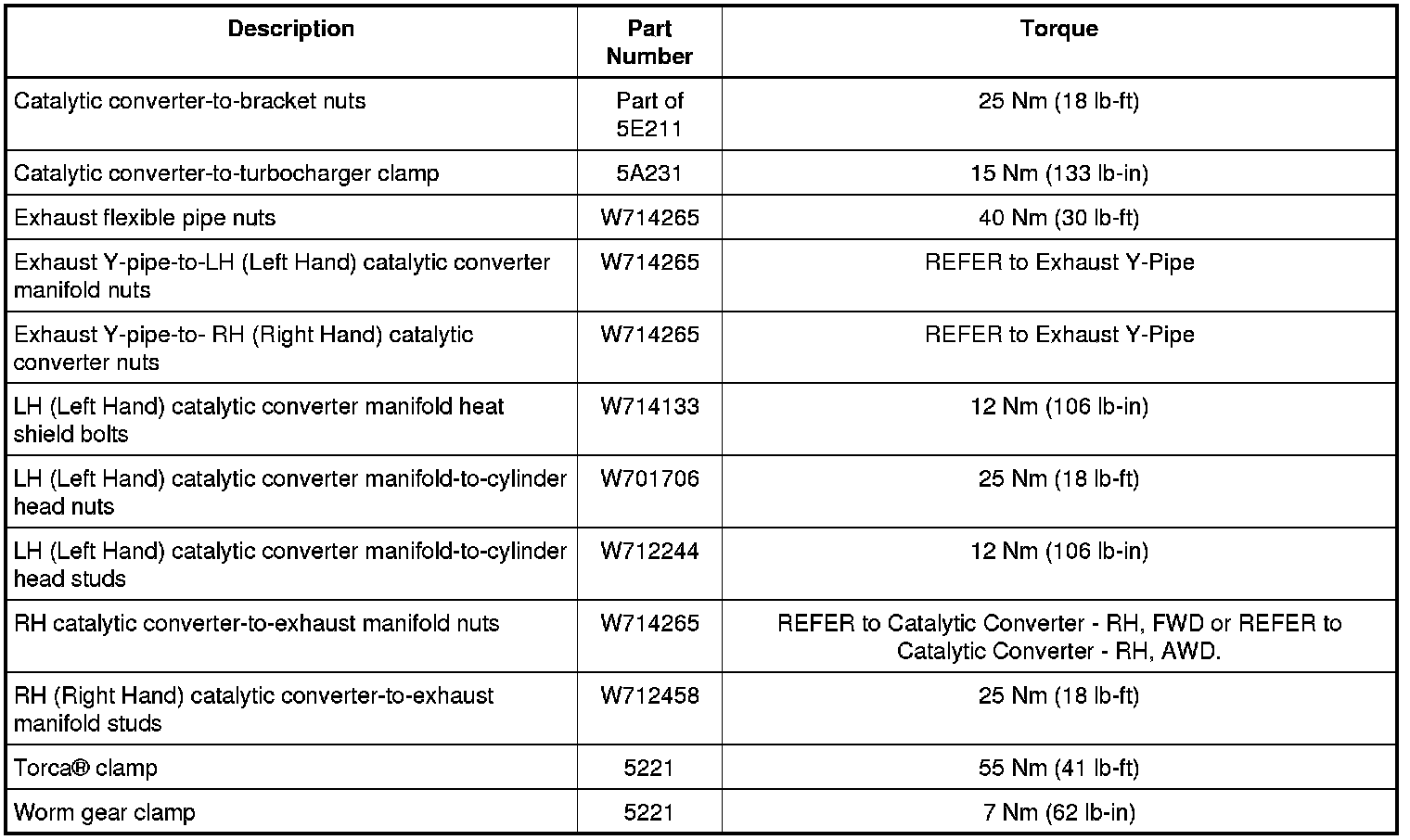 Torque Specifications