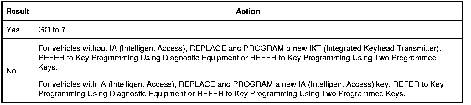 1. CHECK OPERATION OF THE IKT (Integrated Keyhead Transmitter) OR IA (Intelligent Access) KEY