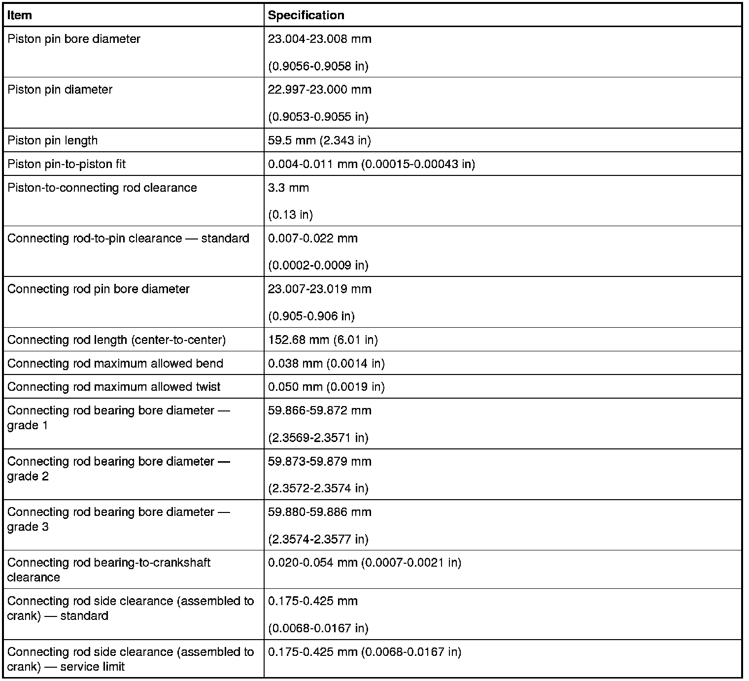 Torque Specifications