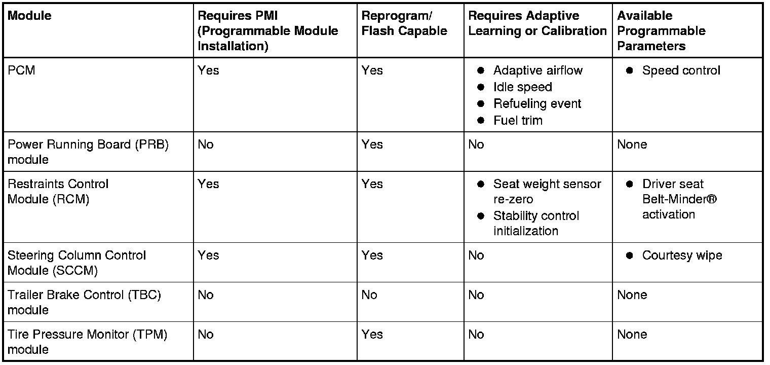 Module reprogramming (also referred to as "flashing") is a scan tool process which updates the strategy/calibration in a module. Reprogramming a module with the same level of software does not improve module operation or repair a hardware failure. Module reprogramming is automatically carried out during PMI (Programmable Module Installation) when a later strategy/calibration is available.