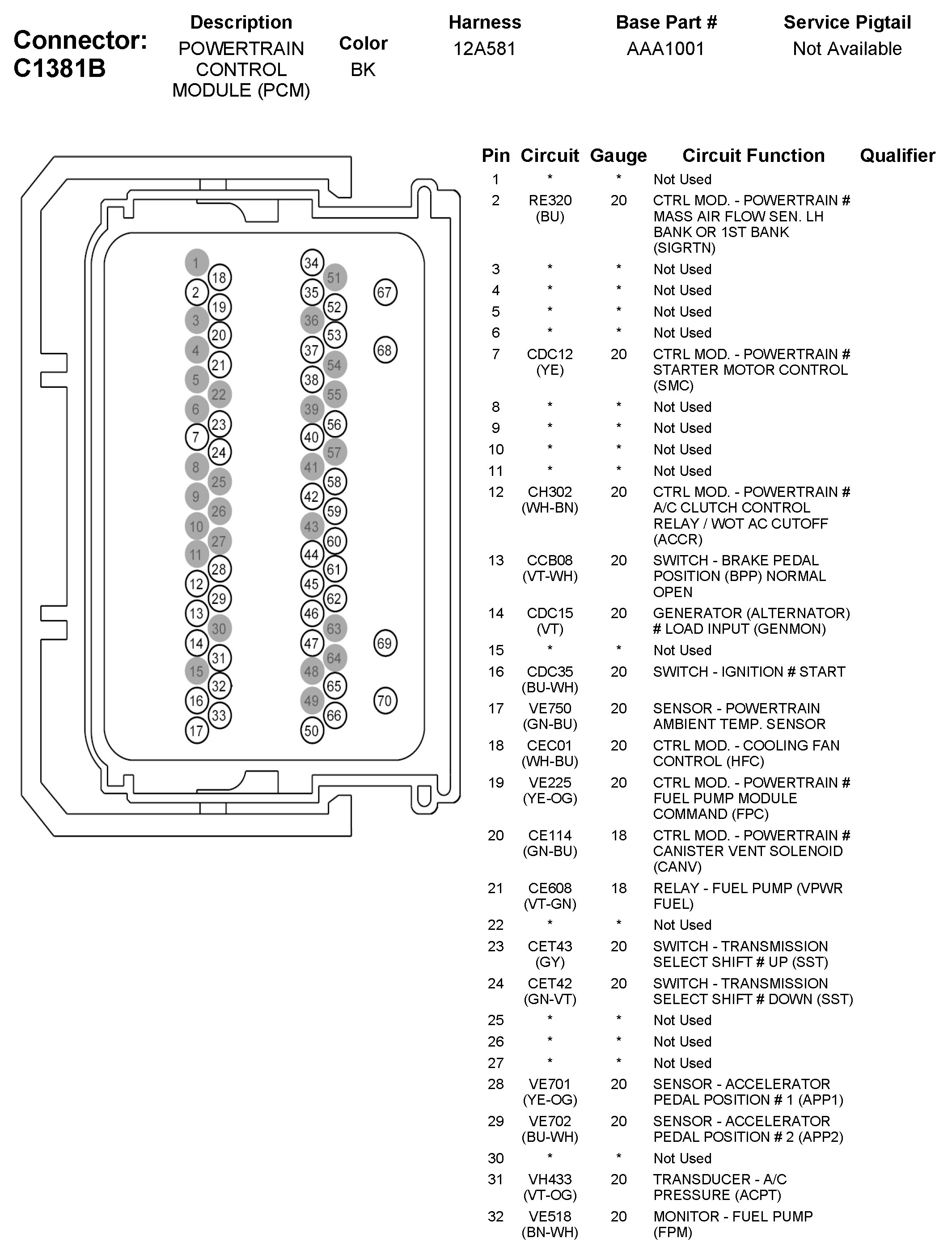 C1381B Powertrain Control Module (PCM)