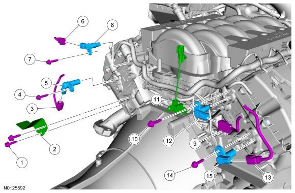 NOTE: The bolts are part of the VCT (Variable Camshaft Timing) variable force solenoid and cannot be removed.