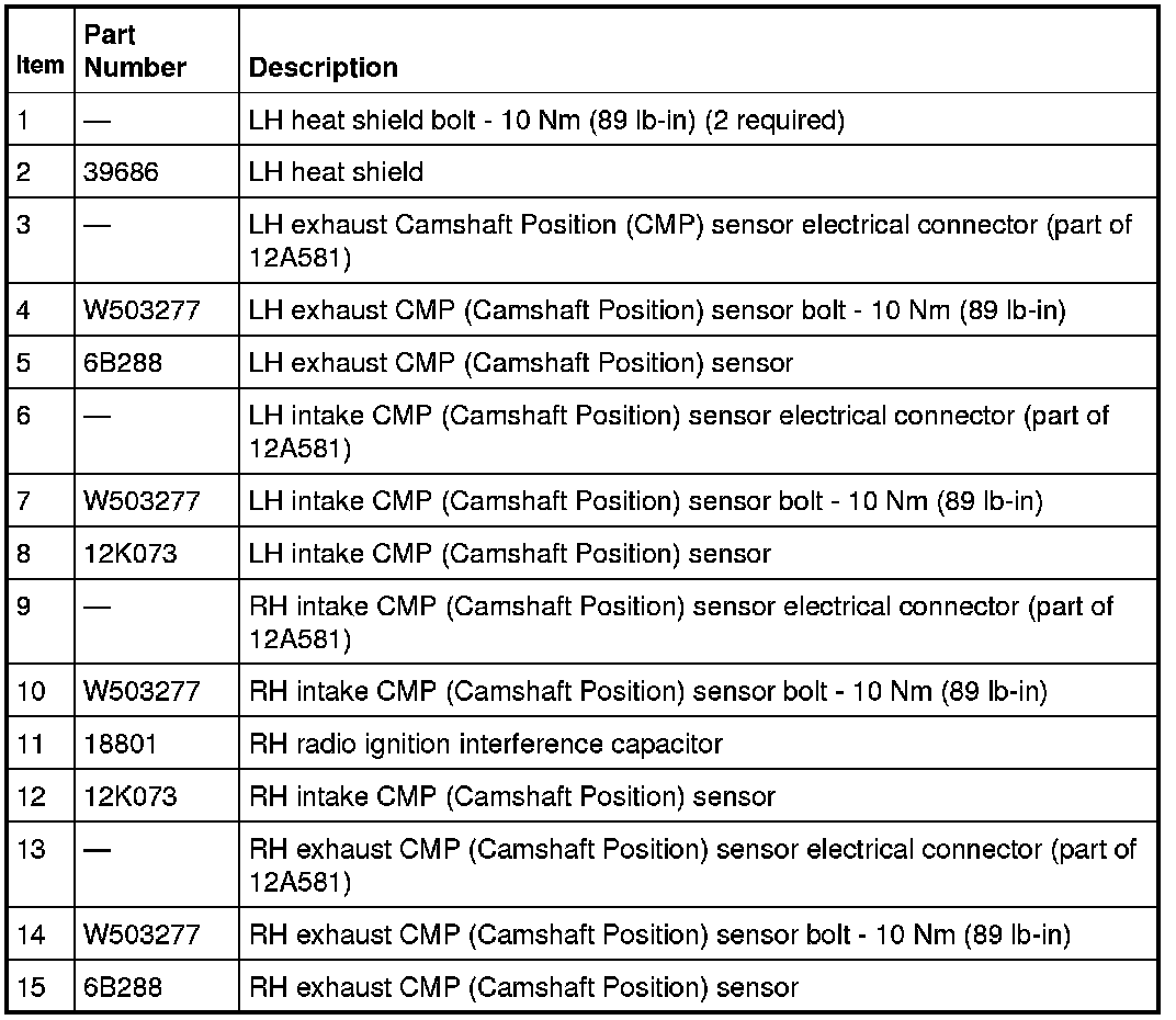 NOTE: The LH or RH valve cover must be removed to perform this procedure. For additional information, refer to Engine.
