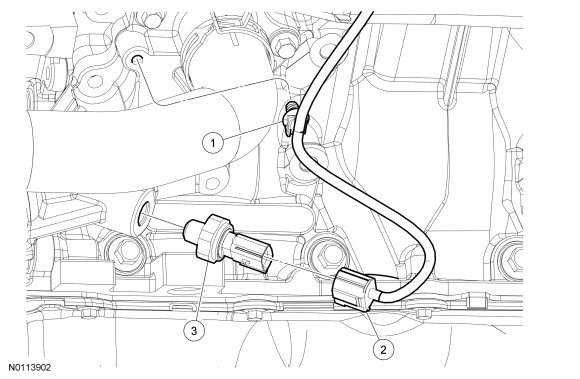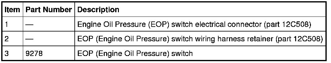 2. Disconnect the Engine Oil Pressure (EOP) switch wiring harness retainer and the electrical connector.