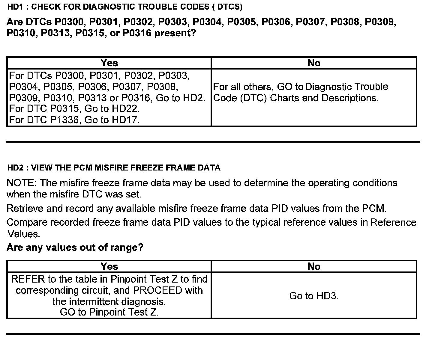Home >> Ford >> 2012 >> F 150 2WD V8-6.2L >> Repair and Diagnosis >> Powertrain Management >> Computers and Control Systems >> Testing and Inspection >> Pinpoint Tests >> Test HD: Misfire Detection Monitor