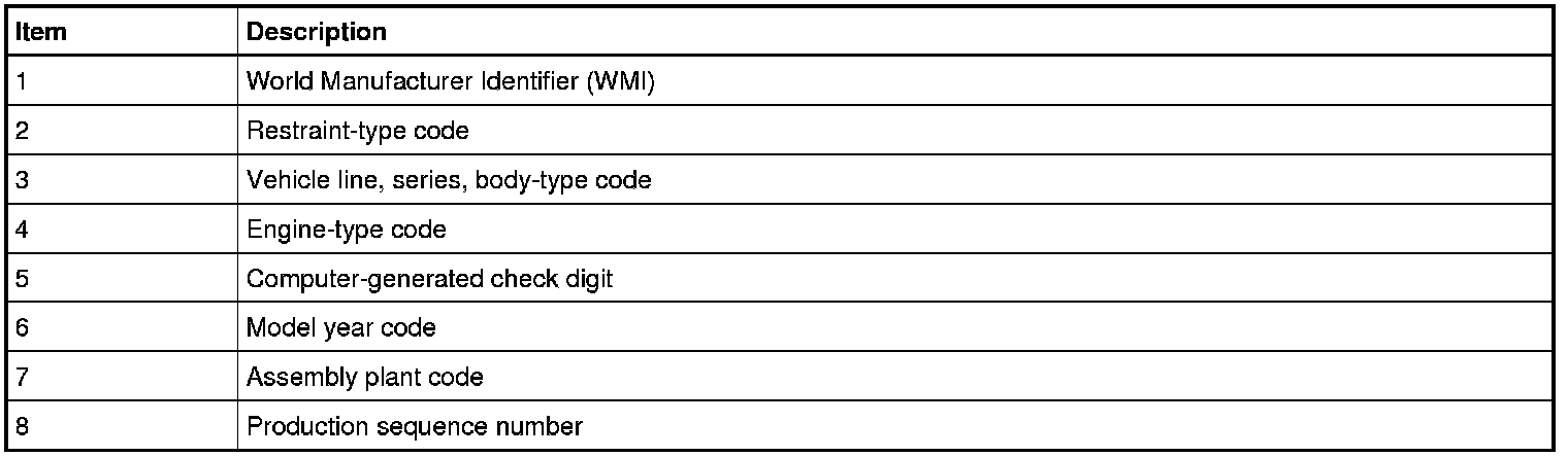 The fourth VIN (Vehicle Identification Number) position is the vehicle restraint type code.
