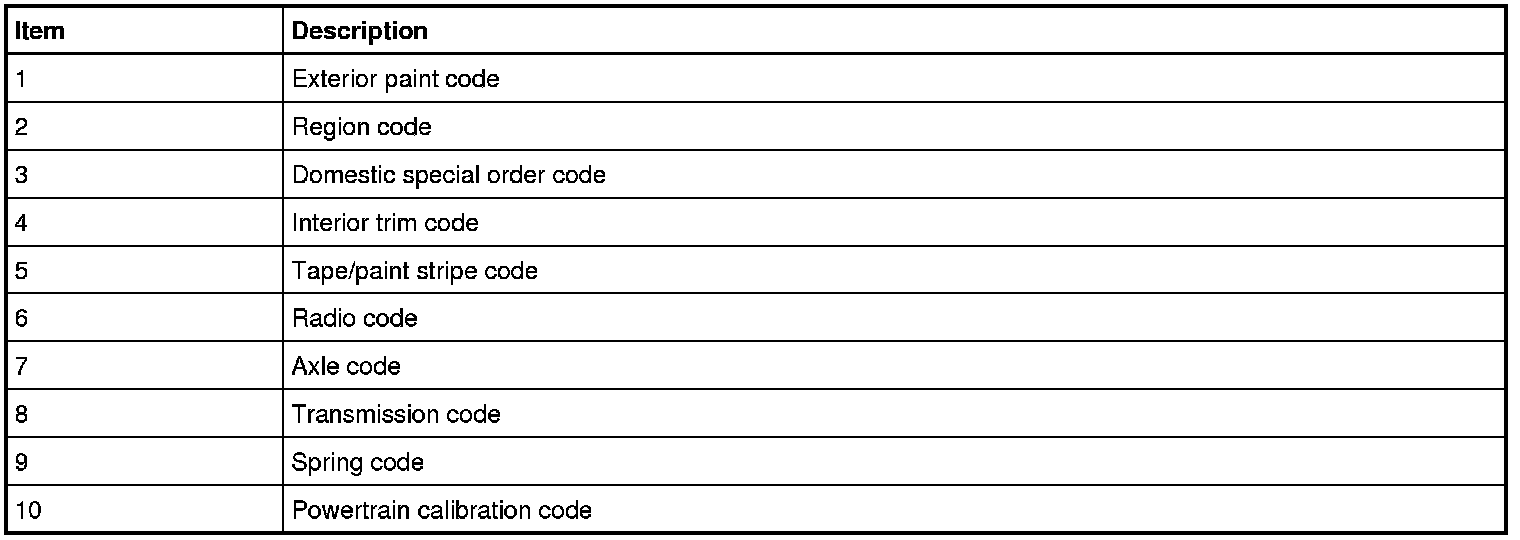 Powertrain calibration information is printed in the lower right corner of the VC (Vehicle Certification) label. Only the base calibration information is printed. Revision levels will not appear, however, they can be obtained through a scan tool using the most current software revision.