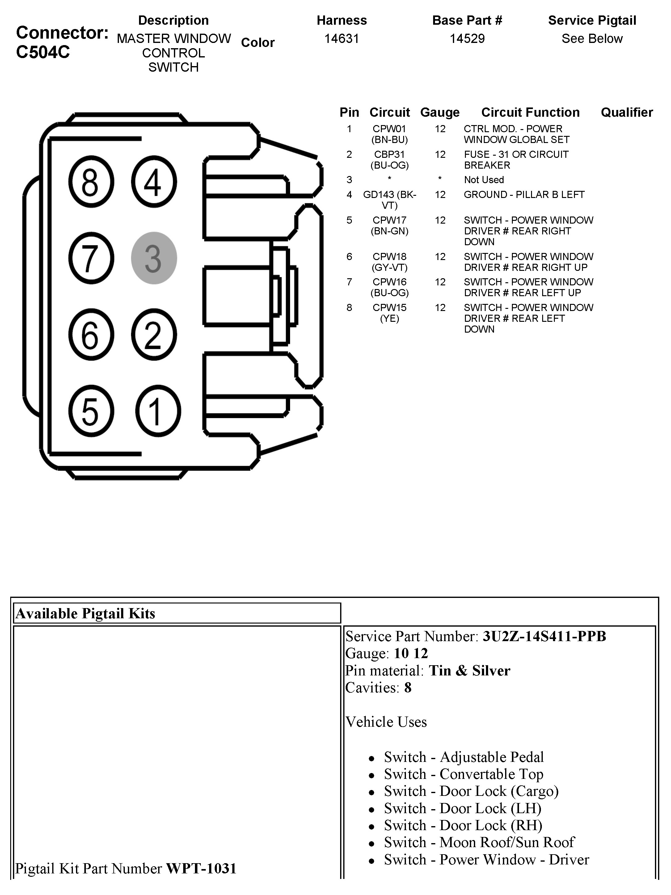 C504C Master Window Control Switch