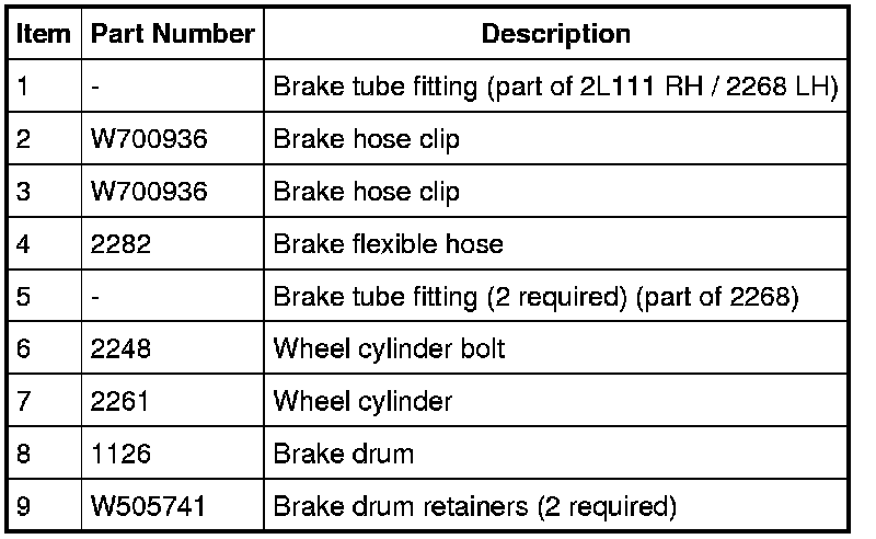 NOTE: If removing the the drum brake backing plate, the wheel hub and bearing must be removed. For additional information, refer to Rear Suspension Service and Repair.