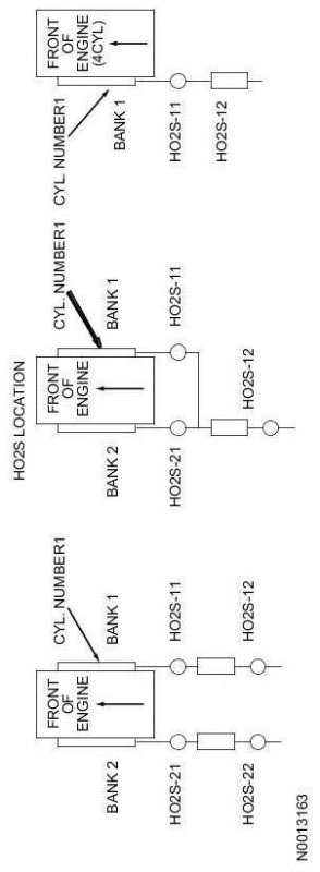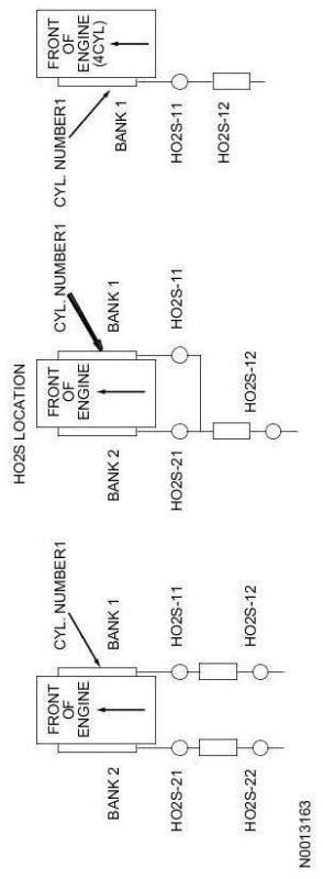 Heated Oxygen Sensor-Front (HO2S-Front) Connector - The pin numbering for the connector is in reference to the connector lock tab. Not all connector key combinations are shown.