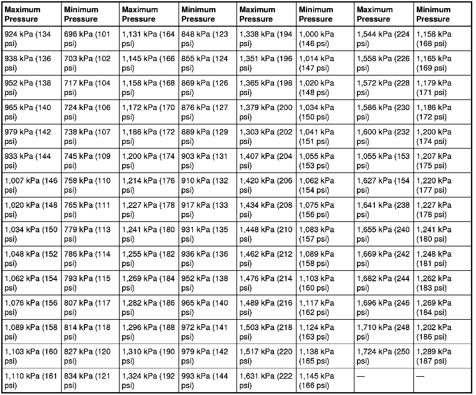 Compression Pressure Limit Chart