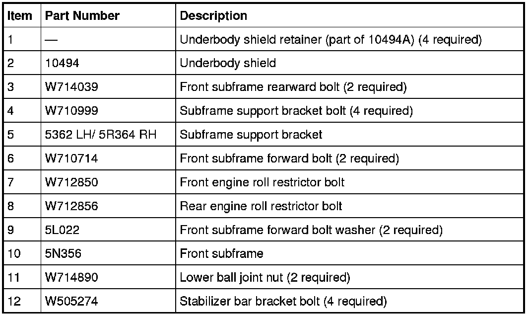 Remove and discard the subframe bracket-to-body bolts.
