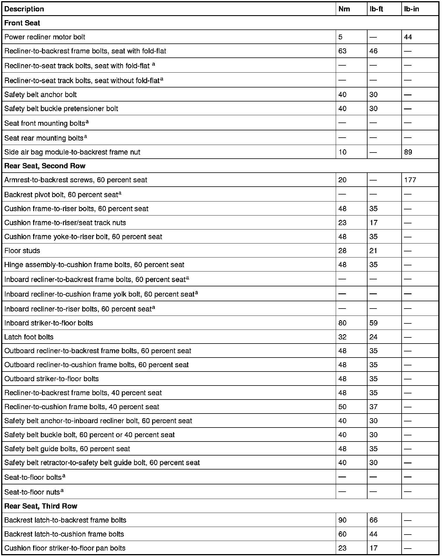 Torque Specifications