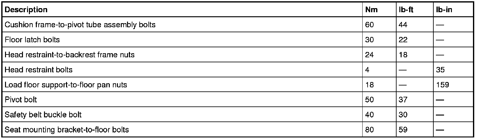 Seats: Specifications