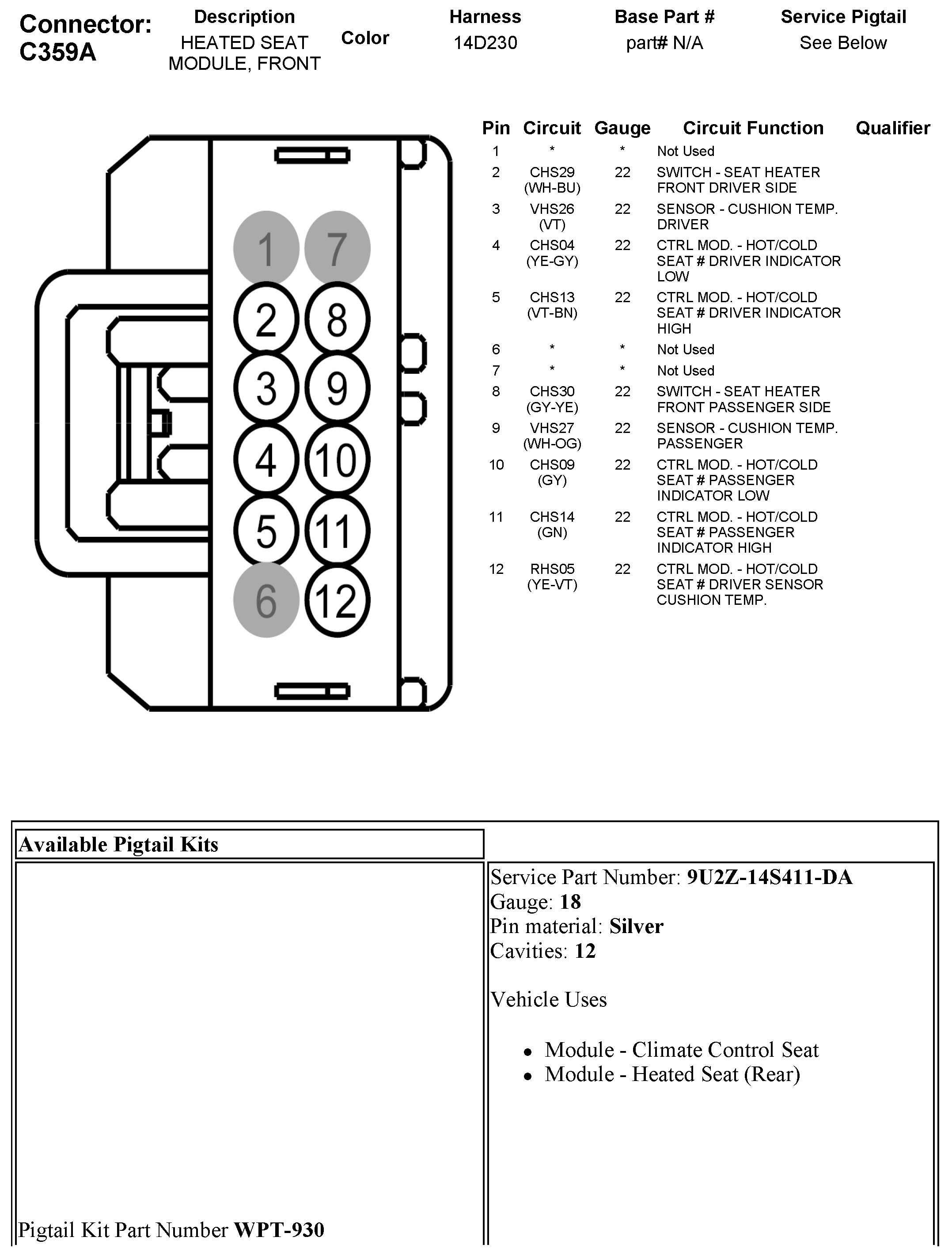 C359A Heated Seat Module, Front