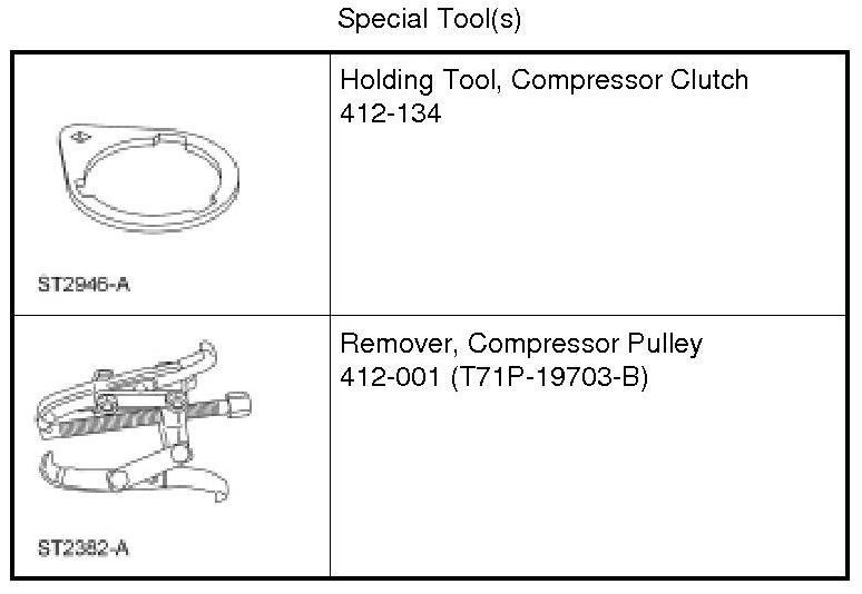1. Remove the A/C compressor. For additional information, refer to Air Conditioning (A/C) Compressor Service and Repair.